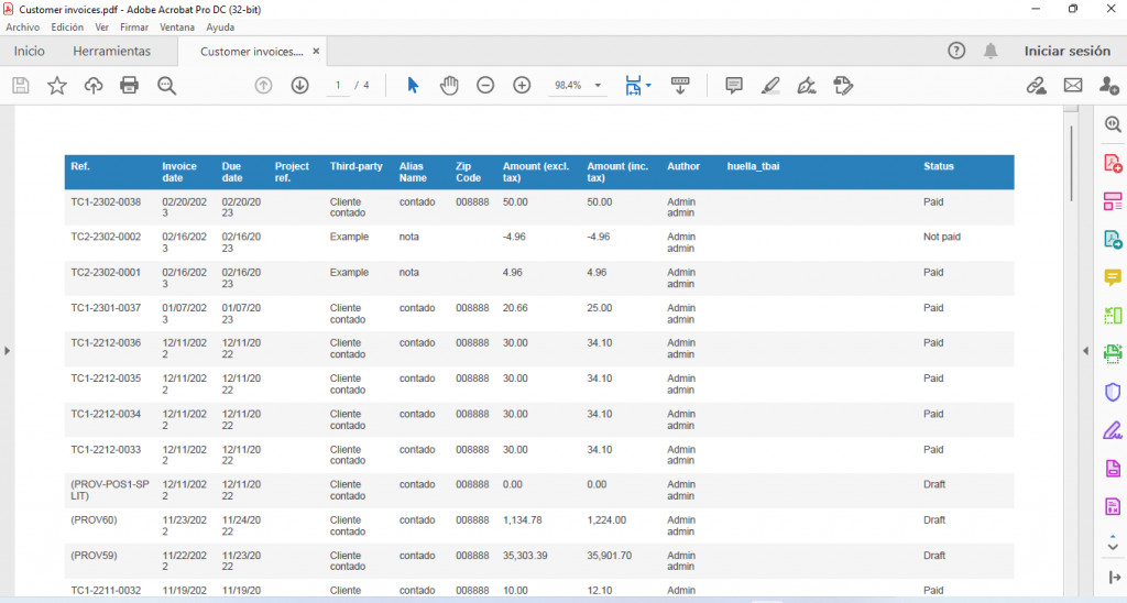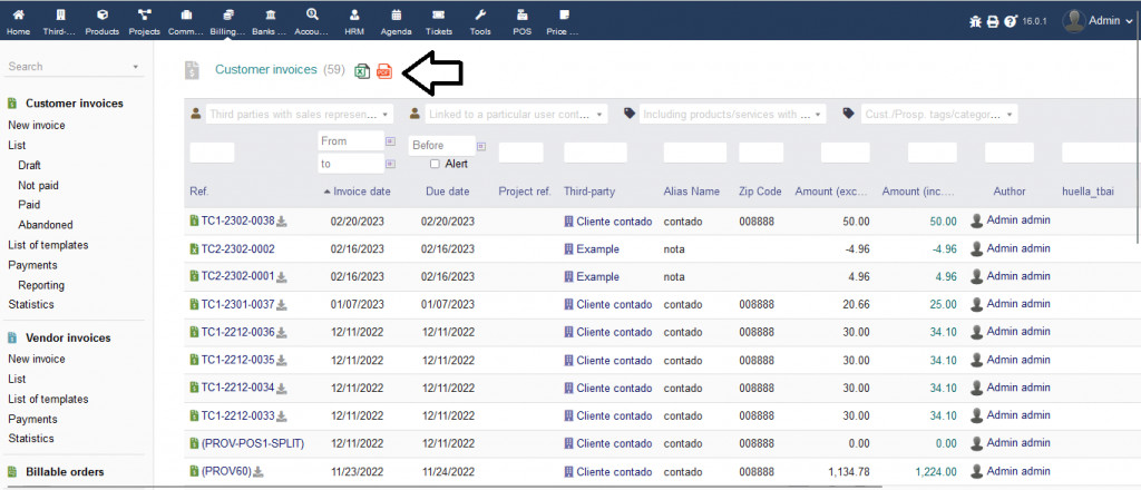Exporte todas las listas clásicas de Dolibarr a Excel y/o PDF. Gestione sus datos según necesite, expórtelos o imprímalos como reportes.