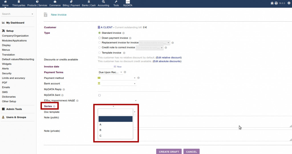 Change the invoice mask - series using {tttt} tag from the New invoice creation card