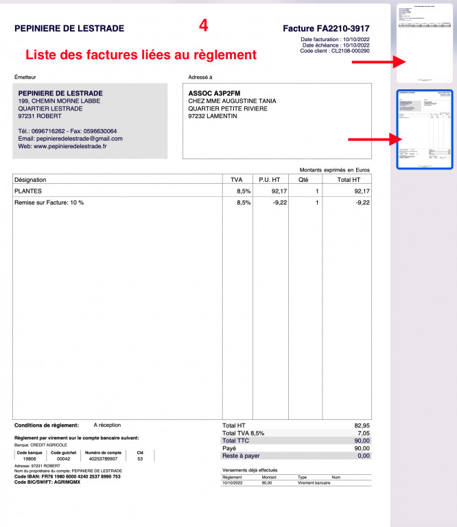 The module is used to download the list of customer payments as a PDF file, there are two possibilities: 1. Download a cover page (see photos) and all the invoices that correspond to the payment in the same PDF file. 2. Download cover page only.