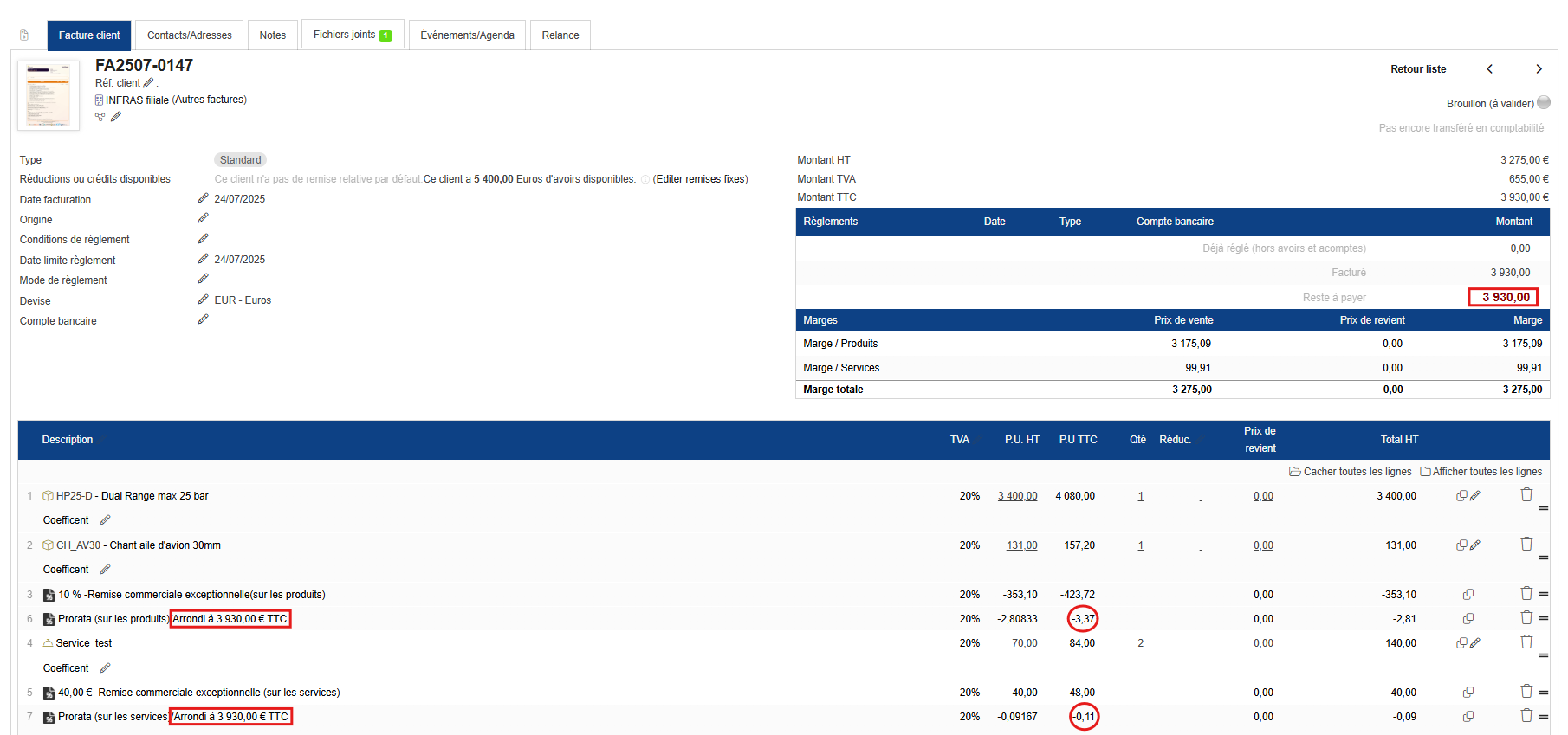 • By using target value (TTC) search functions to create discounts calculated fairly (pro rata) between services and products and by VAT rate.