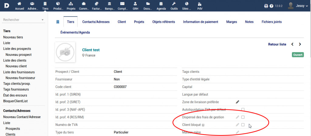 Le module bloquer client permet de bloquer un client dans dolibarr et interdire ainsi l'enregsitrement de commande