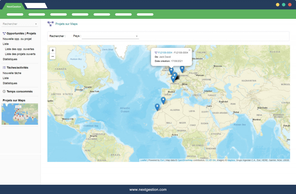 - countries and cities that contain more projects of your company, - a location view of your projects on the World MAP. - a partial life by project (project infos, address, tel ...) The new V4 version of Module has the following updates: