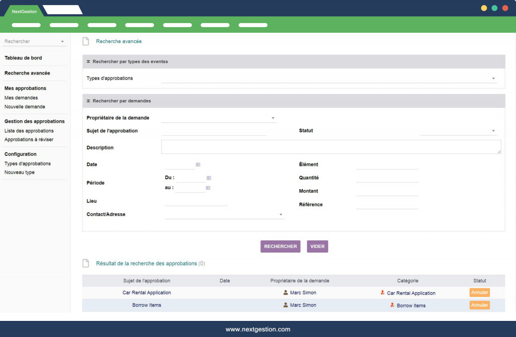 Das Modul "Online-Genehmigungsmanagement für Dolibarr" V4 ermöglicht Ihnen: Wählen Sie, wer entscheidet Jede Anfrage hat ihre Genehmiger. Wählen Sie die Person aus, die jede Anfrage genehmigen muss, auch wenn es sich nicht um den Manager handelt. Benötigen Sie die Genehmigung des Buchhalters und des Managers? Sie können beide Arten von Genehmigungen beantragen.