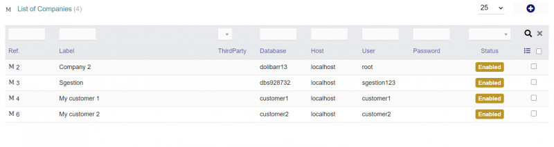 Consenti alla tua installazione di Dolibarr di utilizzare più database. Gli stessi file Dolibarr ei suoi moduli saranno disponibili per varie società. Ognuno completamente indipendente. Molto utile se hai più aziende o clienti.