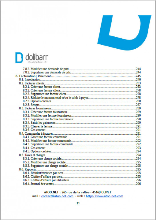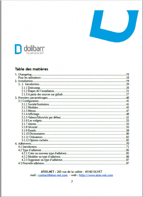 WARNING: This is not a final version, this guide (pdf format, 392 pages) is constantly updated, therefore we recommend that you wear your attention to the new versions that follow the evolution of Dolibarr and will be available to users of dolistore